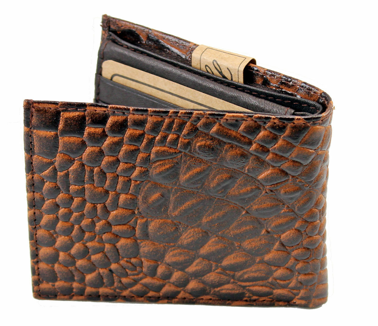 Marrón cuero de slot vaca Croc Mens Bifold Wallet Flap Top Card Holder Alligator Gacor